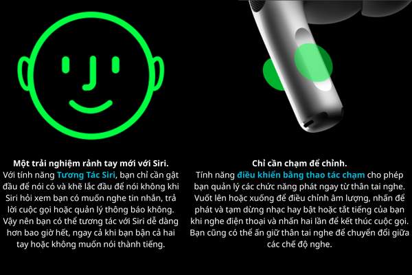 Từ cài đặt tức thì đến câu lệnh qua Siri, AirPods Pro 2 sở hữu tất cả các phẩm chất làm cho dòng sản phẩm AirPods trở nên thật diệu kỳ. Và cả những tính năng được thiết kế thấu đáo mang đến cho bạn năng lực xử lý nhiều việc hơn dễ dàng chưa từng có.