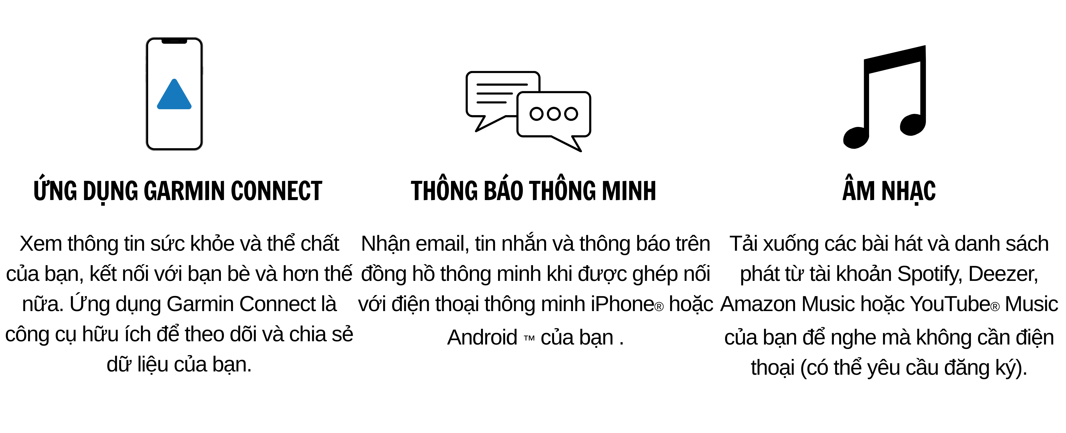 | Connect IQ™ (mặt đồng hồ, trường dữ liệu và ứng dụng có thể tải xuống) | ✓ |