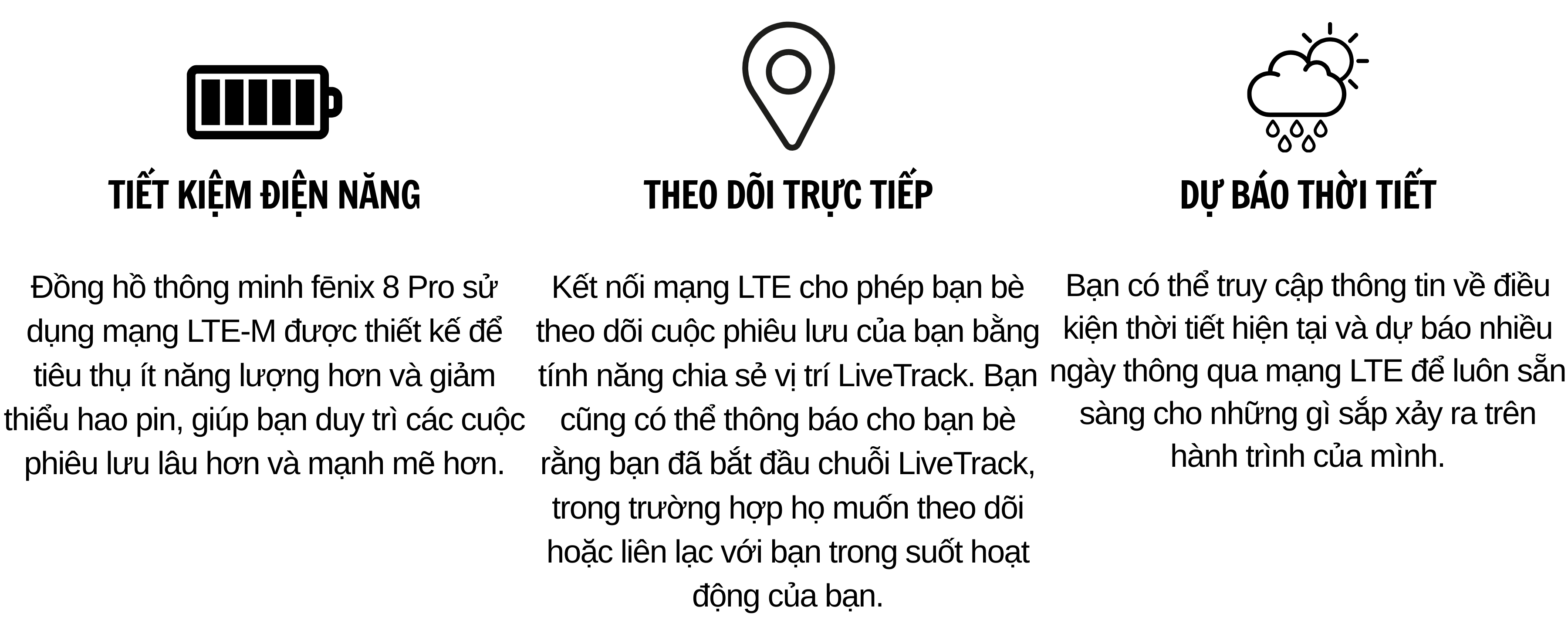 | Kết nối | LTE, Vệ tinh, Bluetooth®, ANT+®, Wi-Fi® |
