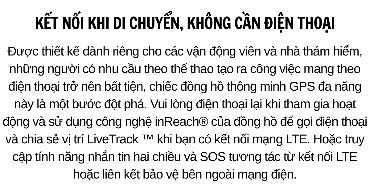 | Thông tin liên lạc vệ tinh | Có (yêu cầu đăng ký inReach, xem chi tiết vùng phủ sóng) |