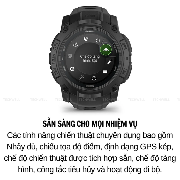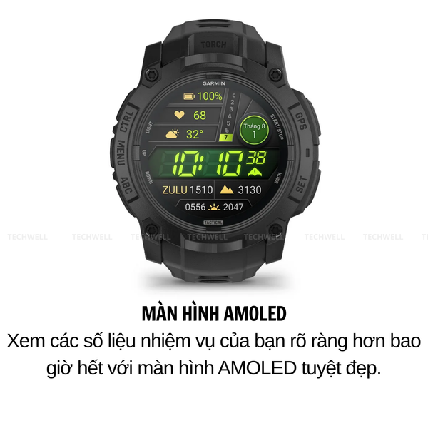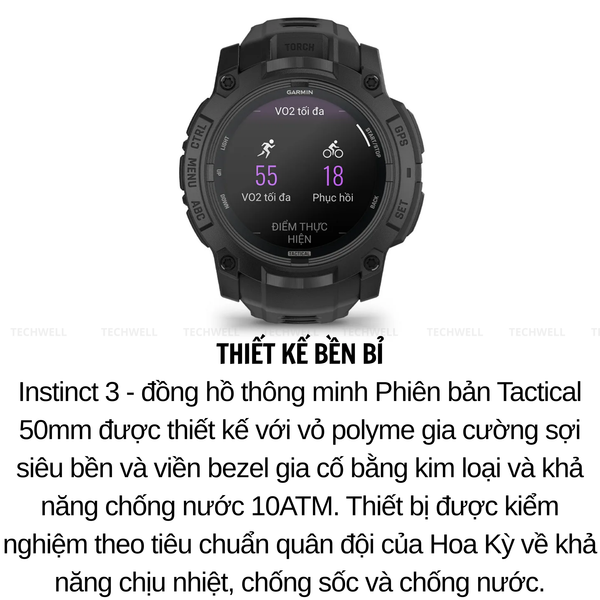 Instinct 3 - Phiên bản Tactical là đồng hồ thông minh GPS được thiết kế cho các nhiệm vụ thử thách nhất, với màn hình AMOLED, viền bezel gia cố bằng kim loại và các tính năng chiến thuật chuyên dụng.