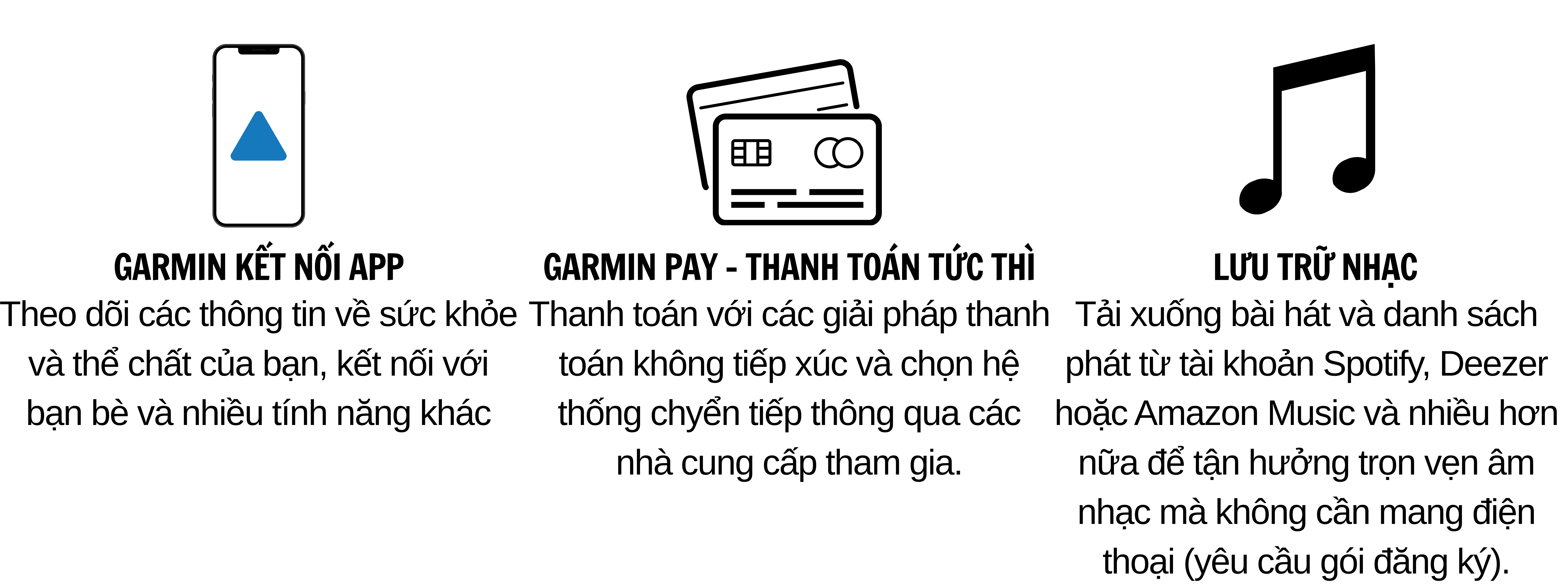 | CONNECT IQ (CÓ THỂ TẢI MẶT ĐỒNG HỒ, TRƯỜNG DỮ LIỆU, CÔNG CỤ VÀ ỨNG DỤNG) | ✓ |