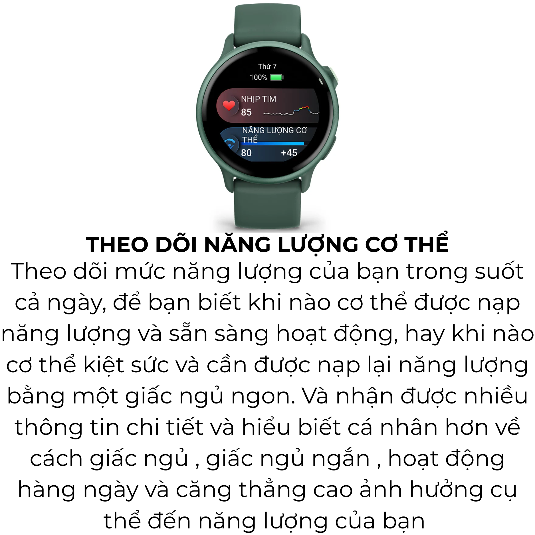 Với màn hình AMOLED rực rỡ và thời lượng pin lên đến 11 ngày, chiếc GPS smartwatch này được trang bị đầy đủ các tính năng thiết yếu giúp bạn chăm sóc sức khỏe và nâng cao thể lực, vívoactive 6 mang đến cho bạn công cụ và thông tin chuyên sâu để thấu hiểu cơ thể mình tốt hơn.