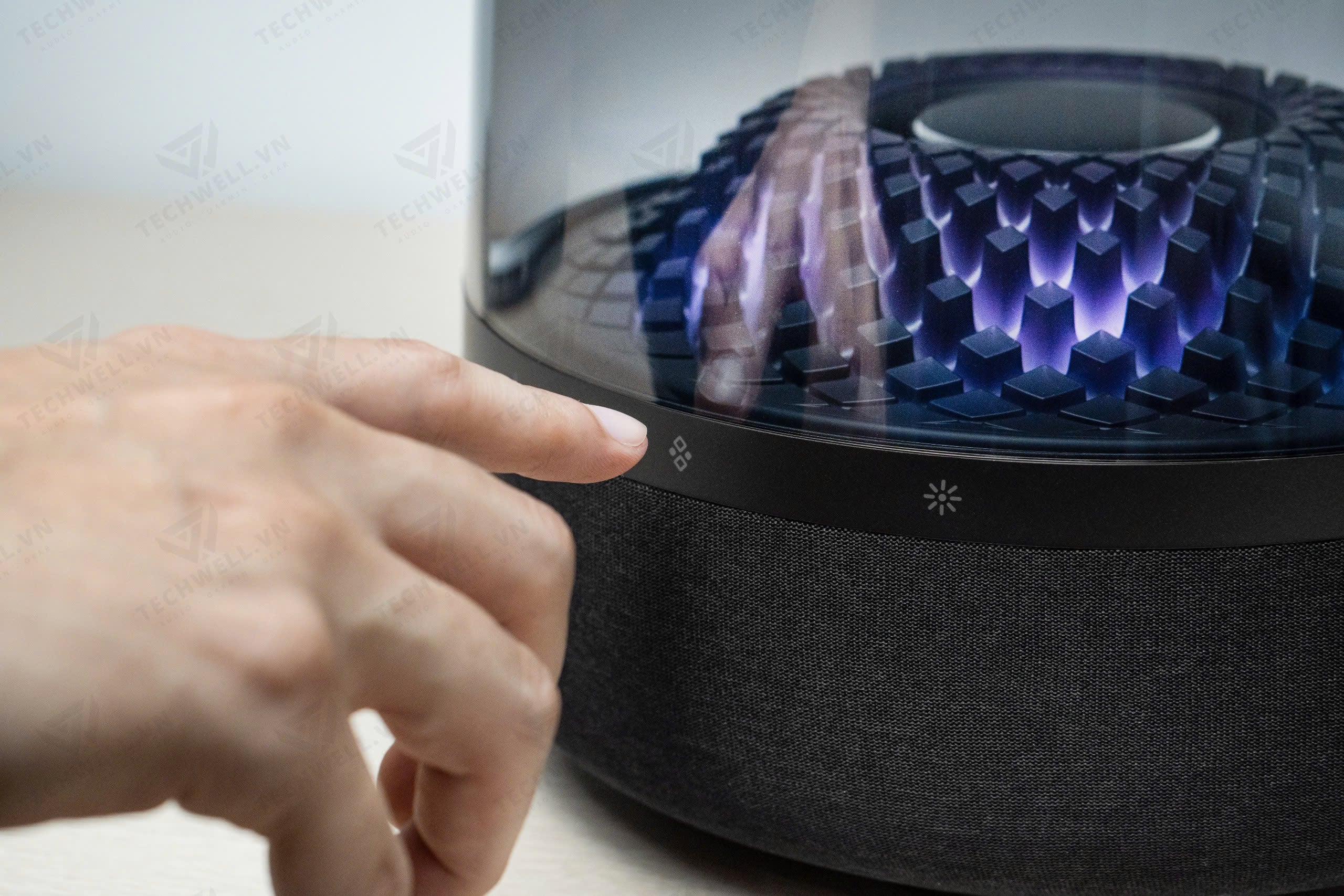 Aura Studio 4 vẫn được tích hợp các nút điều khiển ngay trên viền loa, nhưng thay vì nút điều khiển ấn như các phiên bản aura 3, 2 thì phiên bản 4 các nút đã được chuyển thành nút cảm ứng cực kỳ chất lương.