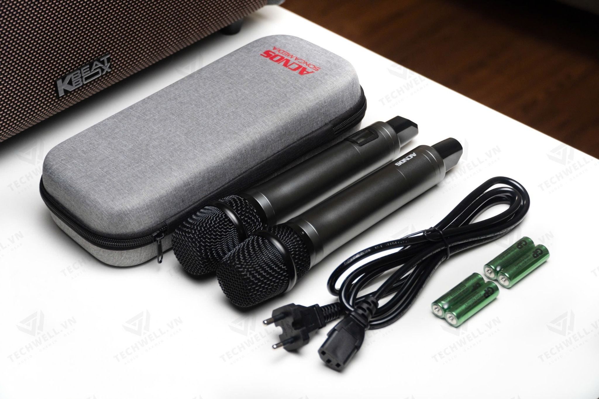 Phụ kiện tiêu chuẩn kèm theo máy | 2 Micro nhôm cao cấp không dây UHF (kèm 4 pin AA) |