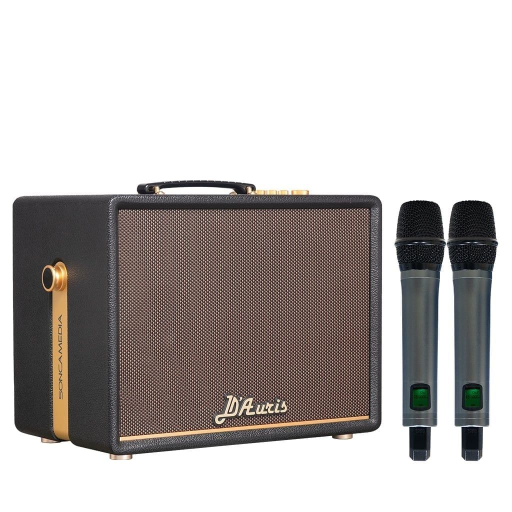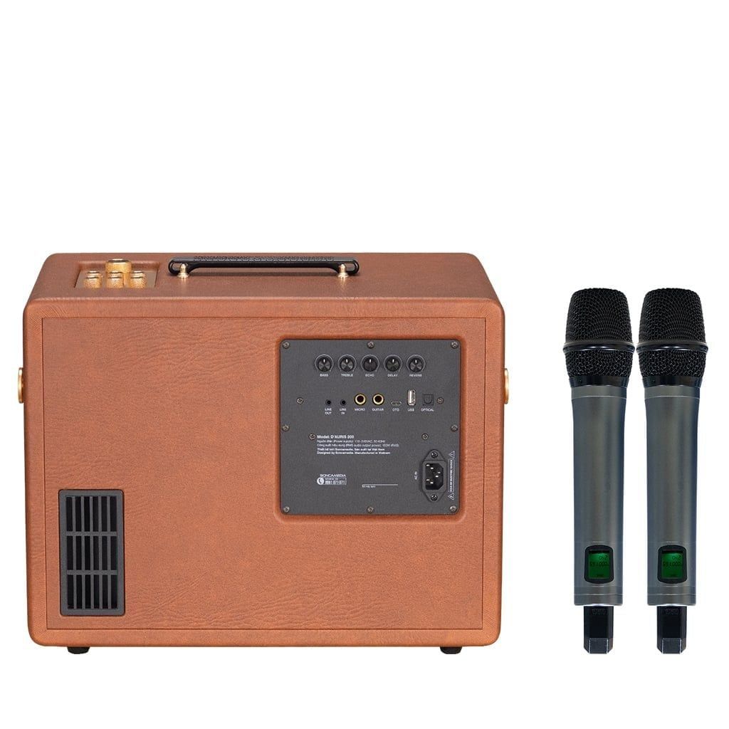 Soncamedia D'Auris 200 được trang bị hệ thống loa Loa BASS 25CM + 1 loa TREBLE (TWEETER) từ Neo cho âm thanh trung thực, chi tiết đến từng dải âm phù hợp cho nhiều chất liệu âm nhạc khác nhau. Soncamedia D'Auris 200 có thêm 2 micro nhôm UHF cao cấp, nhẹ hơi - dễ hát. Đồng thời, Soncamedia D'Auris 200 tích hợp Bluetooth 5.0 giúp kết nối các thiết bị di động nhanh hơn, tiết kiệm năng lượng, tăng phạm vi kết nối và truyền dữ liệu nhanh hơn.