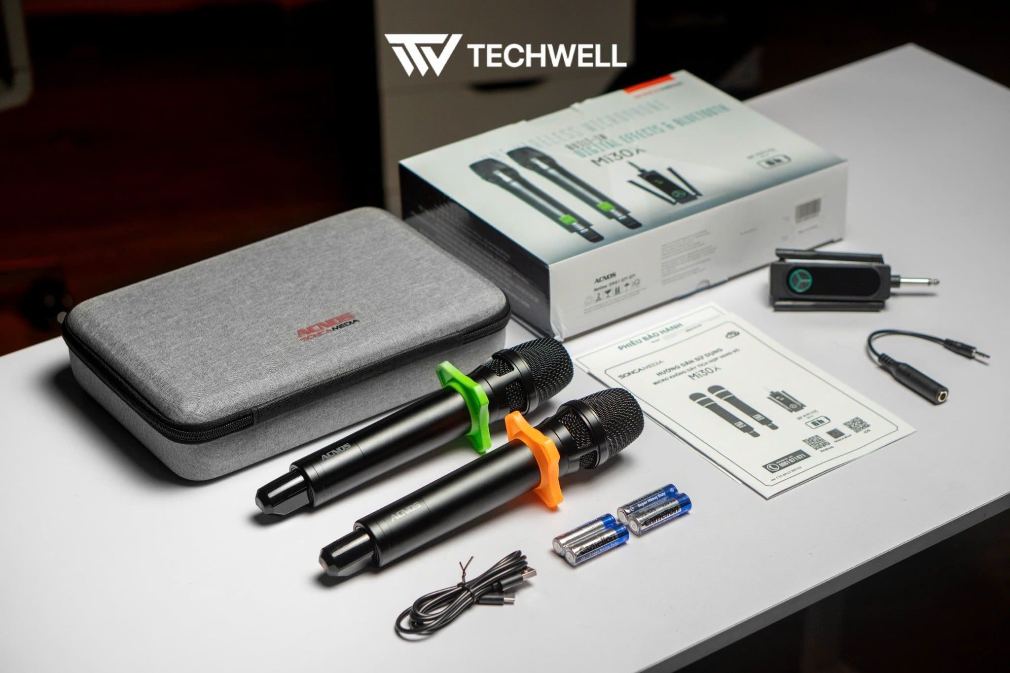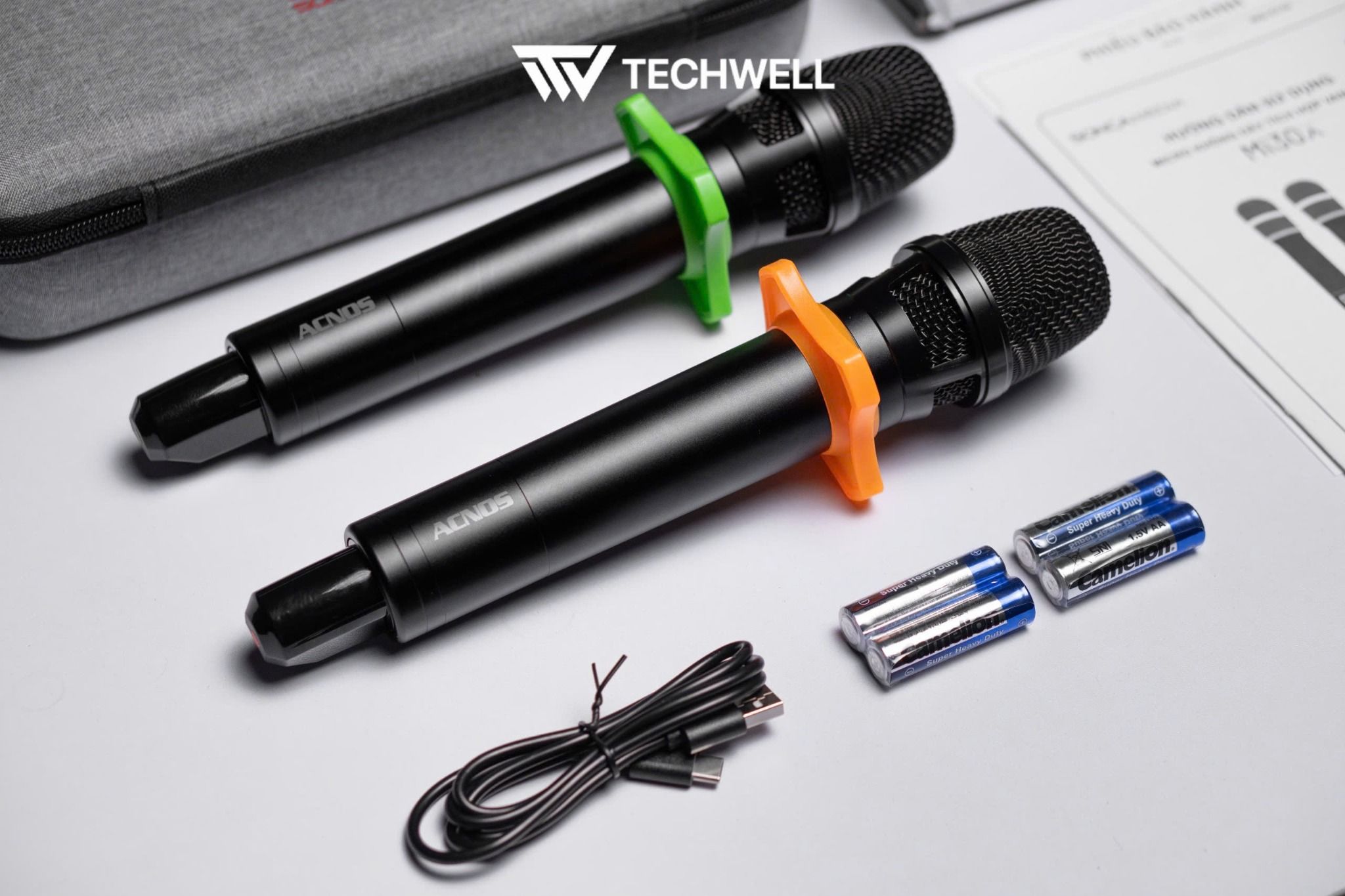 | Phụ kiện tiêu chuẩn | 1 Hộp thu (đã gắn pin sạc) 2 Micro không dây 1 Dây chuyển đổi 6.5mm sang 3.5mm 1 Dây type C 2 Cái chống lăn mic 2 Cặp pin AA Lưu ý: sản phẩm KHÔNG kèm sạc ! |