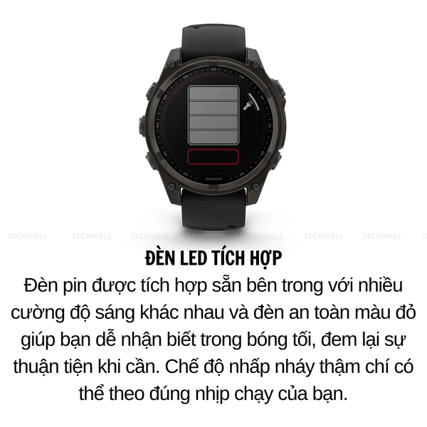 | THỜI LƯỢNG PIN | Chế độ đồng hồ thông minh: Lên đến 16 ngày (7 ngày luôn bật) Chế độ đồng hồ tiết kiệm pin: Lên đến 23 ngày Chỉ GPS: Lên đến 47 giờ (37 giờ luôn bật) Mọi hệ thống vệ tinh: Lên đến 38 giờ (30 giờ luôn bật) Mọi hệ thống vệ tinh + Đa băng tần: Lên đến 35 giờ (28 giờ luôn bật) Mọi hệ thống vệ tinh + âm nhạc: Lên đến 10 giờ Chế độ GPS pin tối đa: Lên đến 81 giờ Chế độ GPS thám hiểm: Lên đến 17 ngày *Giả sử sử dụng điển hình với công nghệ SatIQ |