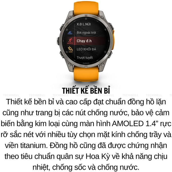 Đồng hồ thông minh GPS đa môn thể thao cao cấp được thiết kế dành cho các vận động viên và nhà thám hiểm chuyên nghiệp luôn muốn bứt phá giới hạn của mình - với nhiều tính năng được nâng cấp như rèn luyện sức mạnh, khả năng chống nước khi lặn, loa và mic cho các tính năng giọng nói, đèn pin LED tích hợp bên trong và nhiều hơn thế nữa