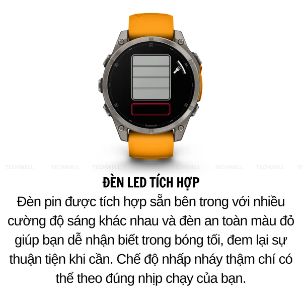 | THỜI LƯỢNG PIN | Chế độ đồng hồ thông minh: Lên đến 16 ngày (7 ngày luôn bật) Chế độ đồng hồ tiết kiệm pin: Lên đến 23 ngày Chỉ GPS: Lên đến 47 giờ (37 giờ luôn bật) Mọi hệ thống vệ tinh: Lên đến 38 giờ (30 giờ luôn bật) Mọi hệ thống vệ tinh + Đa băng tần: Lên đến 35 giờ (28 giờ luôn bật) Mọi hệ thống vệ tinh + âm nhạc: Lên đến 10 giờ Chế độ GPS pin tối đa: Lên đến 81 giờ Chế độ GPS thám hiểm: Lên đến 17 ngày *Giả sử sử dụng điển hình với công nghệ SatIQ |