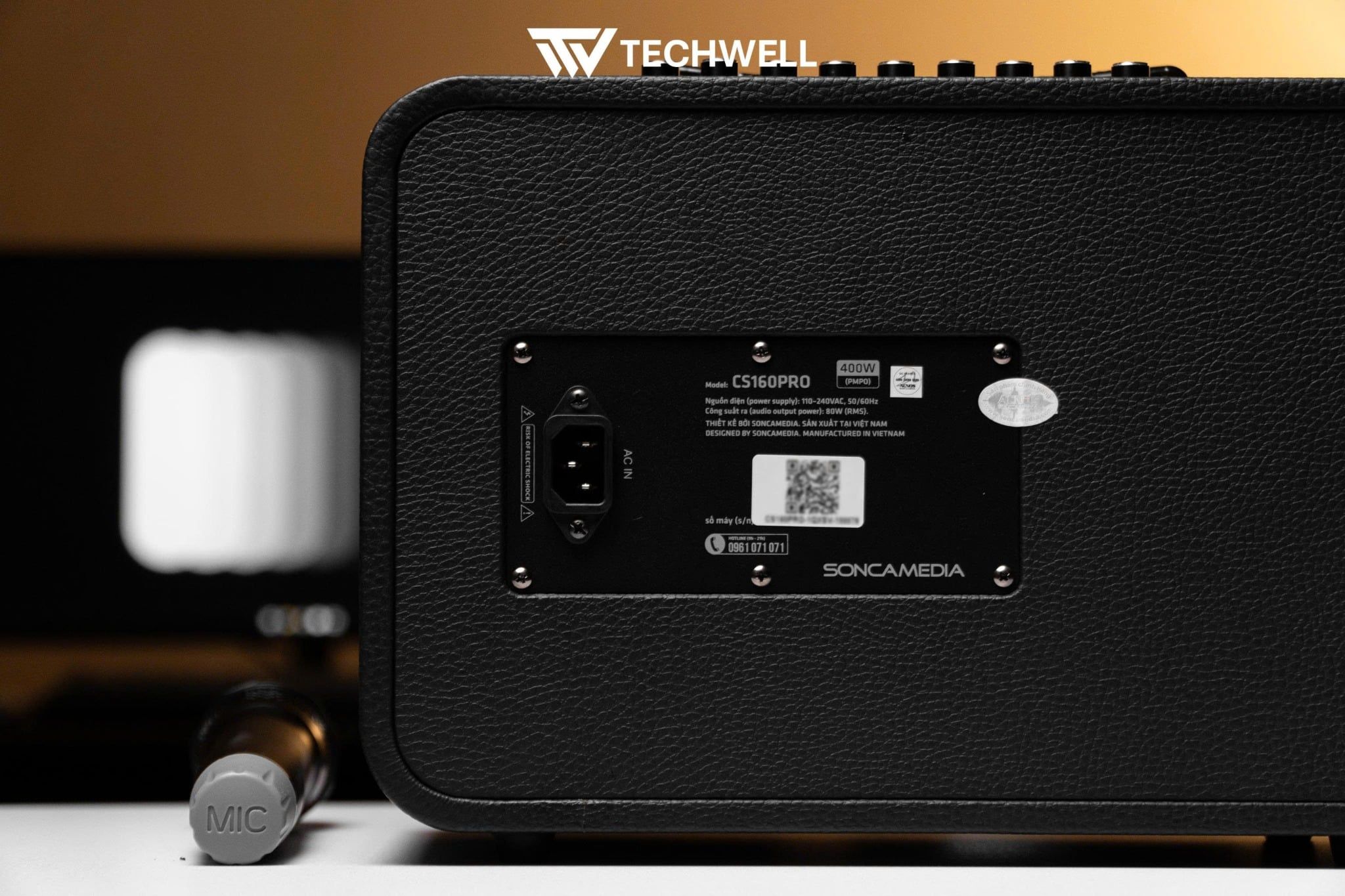 Loa karaoke xách tay SONCAMEDIA CS160PRO là một thiết bị âm thanh đa năng để hát karaoke, nghe nhạc, tích hợp vang số và soundcard. Thiết bị có thể hỗ trợ bạn hát live, karaoke, ghi âm, podcast, học online hay hội nghị trực tuyến một cách dễ dàng và chất lượng. SONCAMEDIA CS160PRO có các cổng kết nối sau: